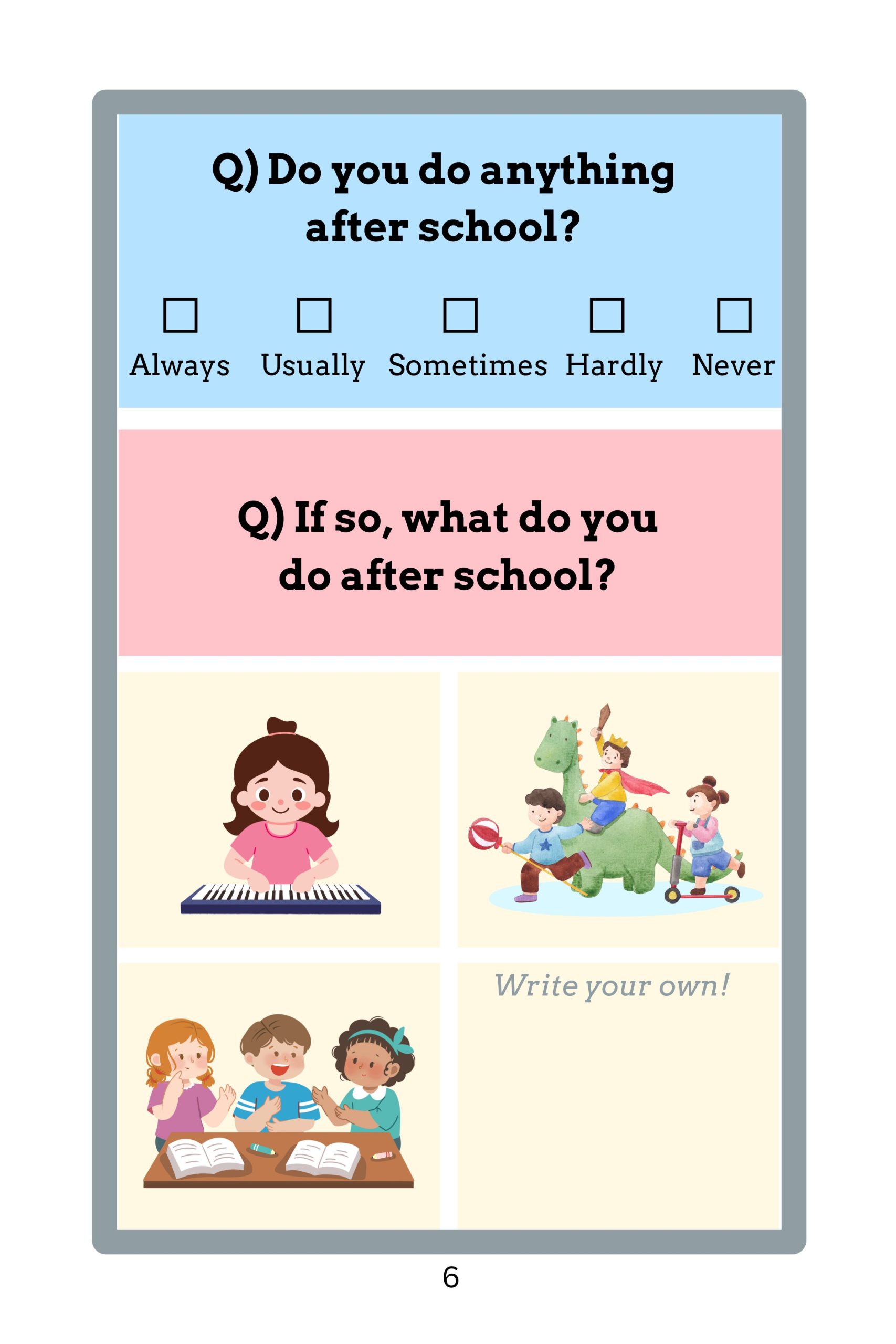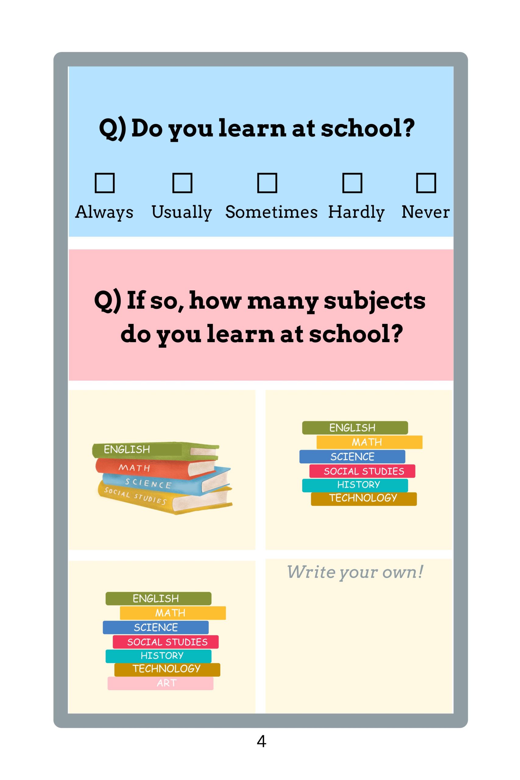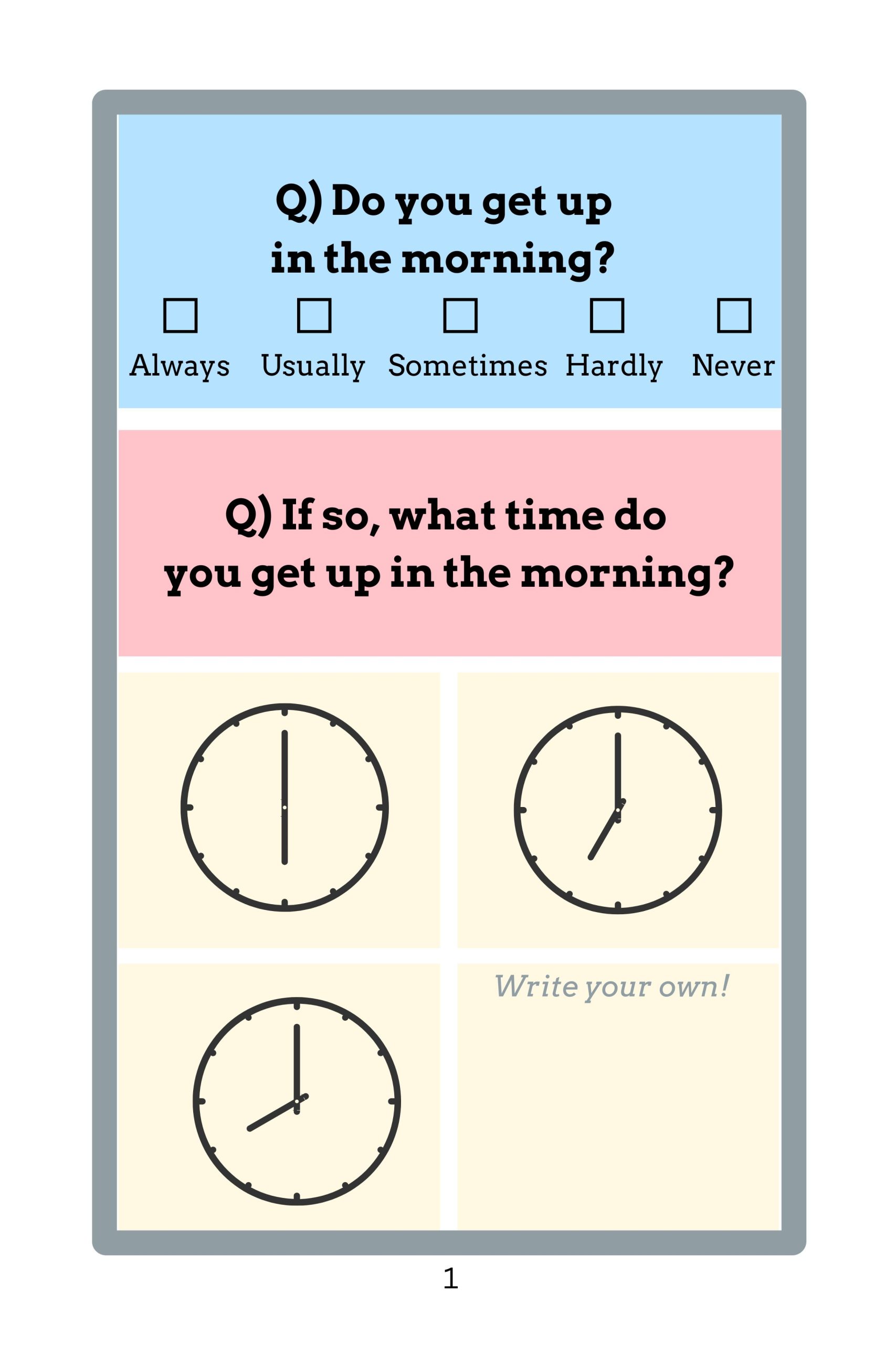 Young learners are guided to use these adverbs in everyday present tense questions with the first and second person pronouns (“I” and “you”).