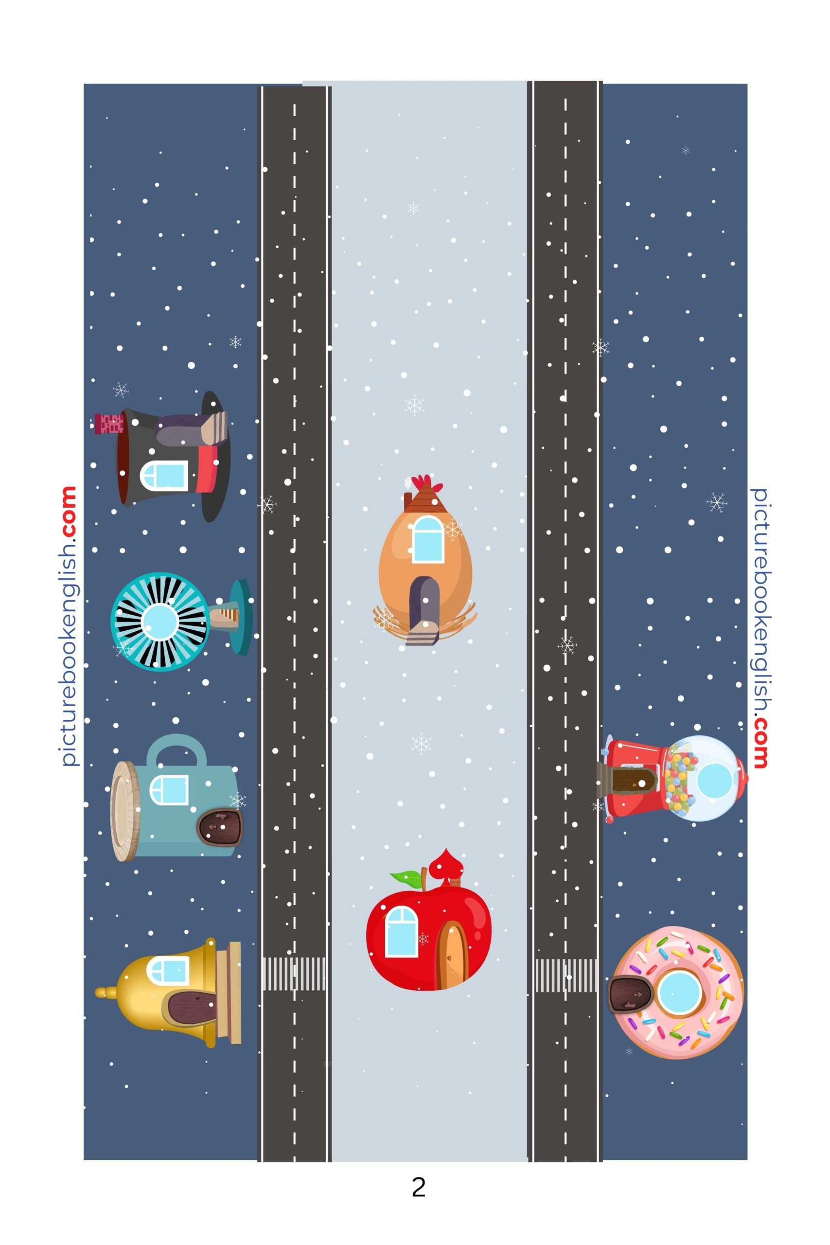 Each lowercase letter lives in its own unique house, making it easier for children to remember its sound through playful phonics. First, explore Apple House (a), Bell House (b), Cup House (c), Doughnut House (d), Egg House (e), Fan House (f), Gum House (g), and Hat House (h). Children can trace letters, match sounds, and enjoy colorful, interactive illustrations. On a snowy night, the lowercase letters peek through windows to watch the snow falling. This adds a magical and cozy touch that introduces little ones and adult figures later in the series.